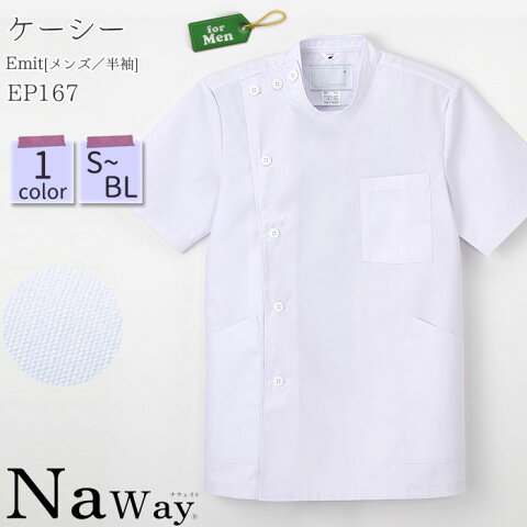 ケーシー EP165 メンズ S〜BL 長袖 ホワイト 横掛 ジャケット 男性/吸水/NAGAILEBEN(ナガイレーベン) Naway(ナウェイ)[白衣 医師 ドクター 看護 ナース 医療 クリニック 病院 薬局 歯科 整体 理容師/メディカル 制服 仕事服]